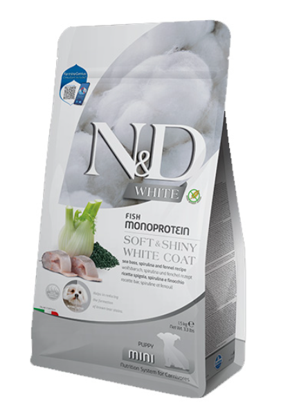 N&D DOG WHITE SEA BASS PUPPY MINI SPIRULINA AND FENNEL – бяло куче