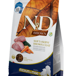 Mini Puppy Lamb & Blueberry – Пълноценна храна за подрастващи кученца и бременни или кърмещи кучета от дребни породи с агнешко, тиква и боровинки. Без зърнени култури, с високо съдържание на животински съставки (над 60%) и тиква – зеленчук с уникални хранителни свойства. Състав: Прясно обезкостено агне (24%), дехидратирано агнешко месо (22%), скорбяла от грах (20%), пилешка мазнина, хидролизиран рибен протеин, дехидратирана тиква (5%), прясна херинга, дехидратирана херинга, дехидратирани цели яйца, рибено масло, растителни фибри от грах, сушени моркови, сушена люцерна, инулин, фрукто-олиго-захариди, мано-олиго-захариди, боровинки на прах (0.5%), спанак на прах, псилиум (0.3%), сушена ябълка, касис на прах, сладък портокал на прах, нар на прах, натриев хлорид, сушена бирена мая, куркума (0.2%), глюкозамин, хондроитин сулфат, екстракт от невен (източник на лутеин).